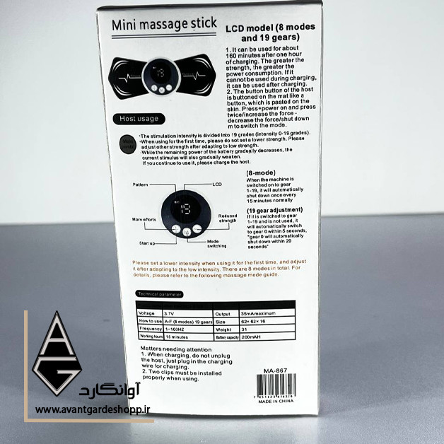 با 8 حالت مختلف ماساژ و 19 درجه شدت قابل تنظیم، میتوانید شدت و نوع ماساژ را مطابق نیاز خود انتخاب کنید. همچنین این دستگاه باعث تحریک درون ماهیچهها، بهبود گردش خون و رفع خستگی میشود.